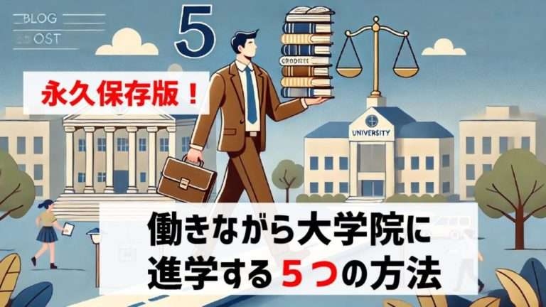 仕事を辞めずに大学院に通う方法を知りたいですか?この記事では働きながらの大学院進学を実現するための5つの具体的な方法を紹介しています。学費、生活費、そして時間の確保方法まで、キャリアアップやキャリアチェンジを目指す社会人必見の情報が満載です。長期履修制度・日本学生支援機構奨学金制度・教育訓練給付制度・自己啓発休暇や企業派遣・1年への通学期間短縮の5つの制度を使いこなしてください!