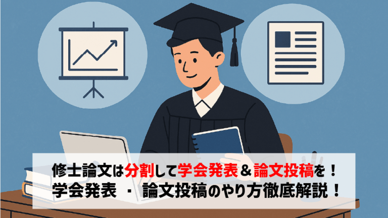 書いて出すだけだともったいない!修士論文は分割して学会発表&論文投稿を!学会発表・論文投稿のやり方徹底解説!