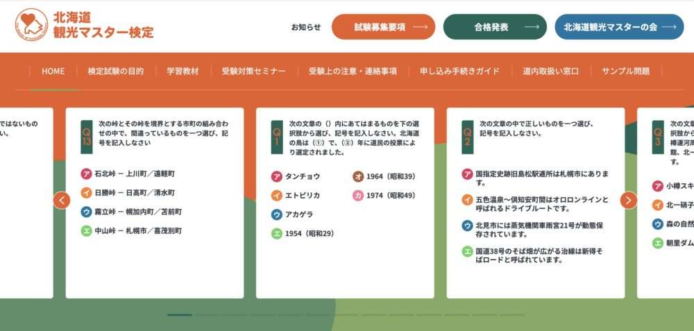 観光業の方はもちろん、北海道の観光や地理・歴史に興味のある方が多数受験する資格となっています。