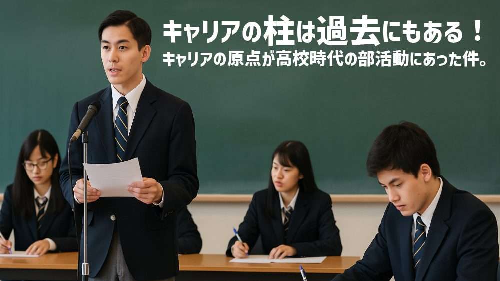 私は高校時代、ディベート部に所属していました。ディベート部での経験が今のキャリア形成に直結していることに先日ようやく気づきました。肯定・否定両方の立場を準備し、根拠をもとに論理的に主張する力は、現在の研修講師や塾運営にそのまま活きています。このように、キャリアの原点は過去の経験に隠れているかもしれませんね!