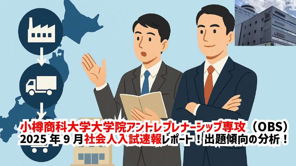 9月21日はOBS社会人入試本番でした。1対1大学院合格塾からも多くの受講生が挑戦なさいました!2025年の小論文テーマは「サプライチェーン」。効率重視から効果重視、さらに企業同士の共進化が問われました。今後の対策には経済教室の読み込みと経営学の専門的学習が必要ですよ!