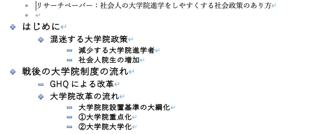 ぜひ研究論文を書き始める前からアウトラインモードの使い方に慣れてみてくださいね!