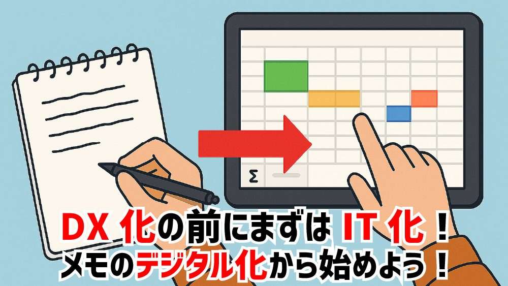 実家に帰省して感じたのは、手書きメモなど“アナログ作業”の多さです。メモがなくなったり、計算ミスが起こったり…。そこでGoogleスプレッドシートの使い方を伝えたところ、「便利!」と大好評。デジタル化すればミスも減り、作業効率もアップします。DXの前にまずIT化。日常の手書きメモをスマホ入力に変えるだけで、生活も仕事もラクになります!