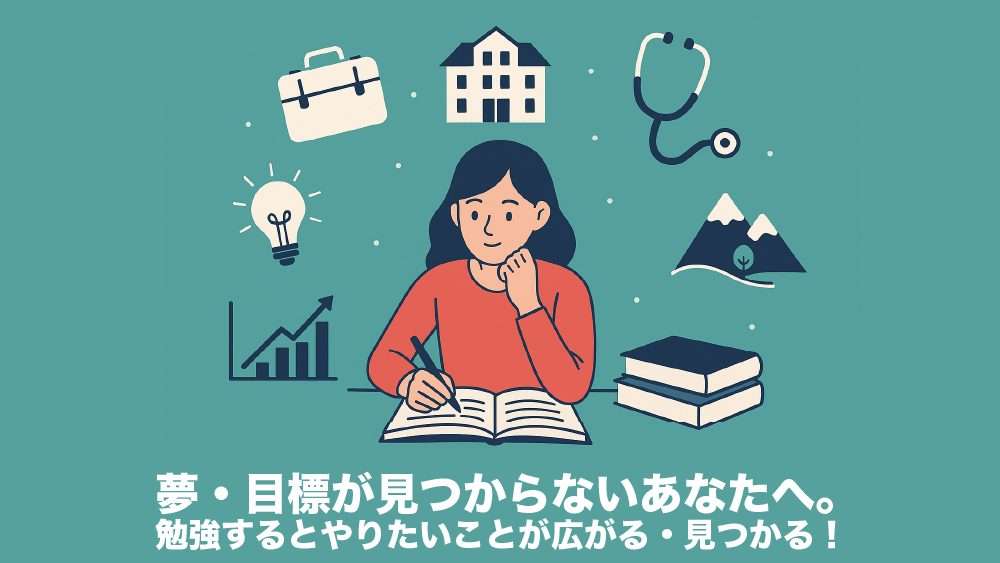 今回は「夢を見つけたい」「自分なりの目標を持ちたい」という方に対し、「勉強することで夢・目標を見つけられる!」ことをお伝えします!