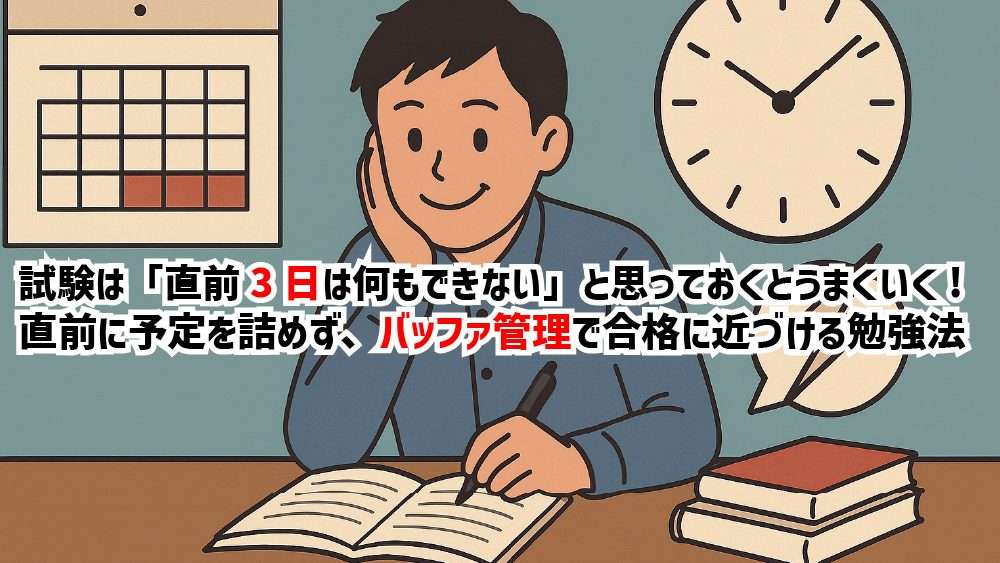 それは試験勉強の計画は「3日前までにすべてを終わらせる」つもりで作ったほうがいい、ということです。