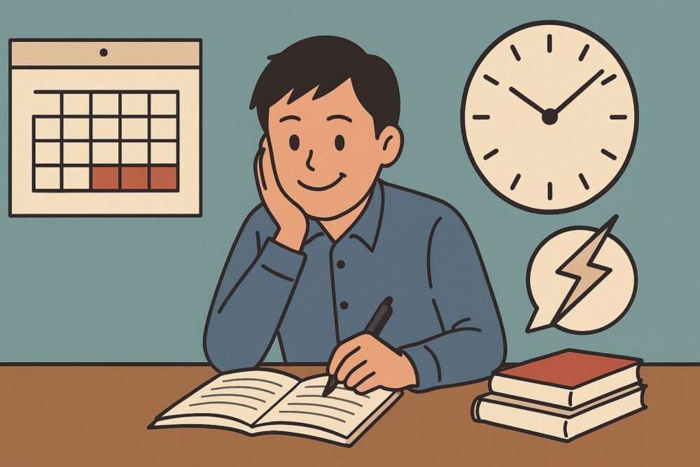 試験直前の3日間で一気に追い込む計画、社会人にはとても危険!それは仕事のトラブルや体調不良など、直前には必ず予期せぬことが起きやすいためです。だからこそ「試験3日前までに全て終える」戦略が重要です。計画に余白を持たせることで心の余裕も生まれ、本番で力を発揮しやすくなります。大学院受験でレポートでも、締切3日前完了を意識することが成功への近道ですよ!