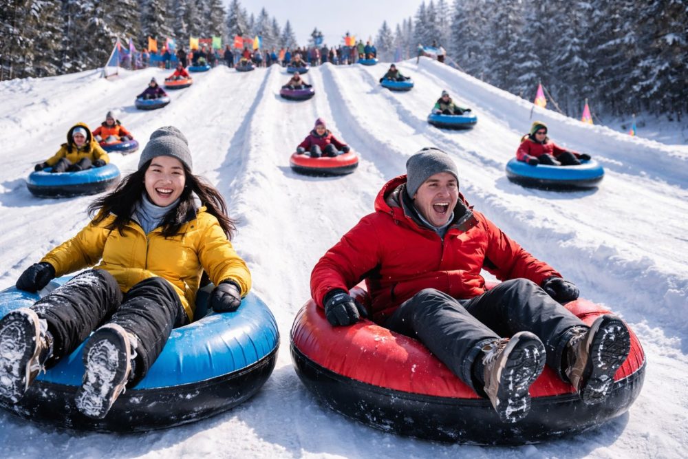 冬の滝野すずらん丘陵公園で、チューブ滑りのバイト