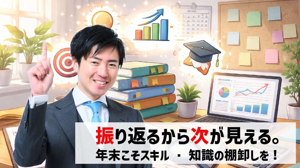 年末の大掃除と同じように、自分のスキルや学びも棚卸ししてみませんか。1年を振り返ることで、身につけたスキルや挑戦、成長が見えてきます。「今年あまり学べなかった」場合も、振り返ることで来年何を学ぶか考えることができます。ぜひ年末に自分の学びを振り返ってみましょう!