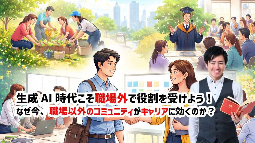 生成AIが発展する反面、人と関わる力が今まで以上に重視されてきています。この時代に対人関係能力を身につける秘訣は職場外の場所で「役割をあえて引き受ける」こと。会社だけでは学びが限られる時代、地域やNPO、大学院など職場外の非営利組織での経験が、人間関係力やリーダーシップを育ててくれます。若干面倒でも役割を担うことで視野が広がり、成長につながるはずです!