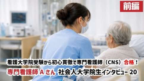 看護大学院を経て専門看護師(CNS)資格を取得したAさんへのインタビュー後編。大学院での研究も実習も医療政策や制度など膨大な知識を常に更新し続ける大変さがありますが、その学びは実践に直結していると語っていらっしゃいました。大変だった大学院生活でしたが「自分で辞めなければ最後まで行ける」という言葉と仲間に支えられ無事修了・CNS取得を実現なさいました!