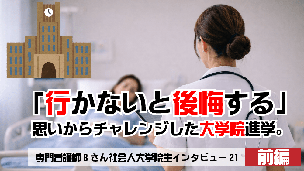 専門看護師Bさんへの社会人大学院インタビュー企画!産婦人科外来で長年勤務してきた看護師Bさんは、がん治療後の女性の生活支援が十分に行われていない現状に強い違和感を持ち、母性看護専門看護師(CNS)を目指して大学院進学を決意なさったと言います。インタビューの前編をお送りします!