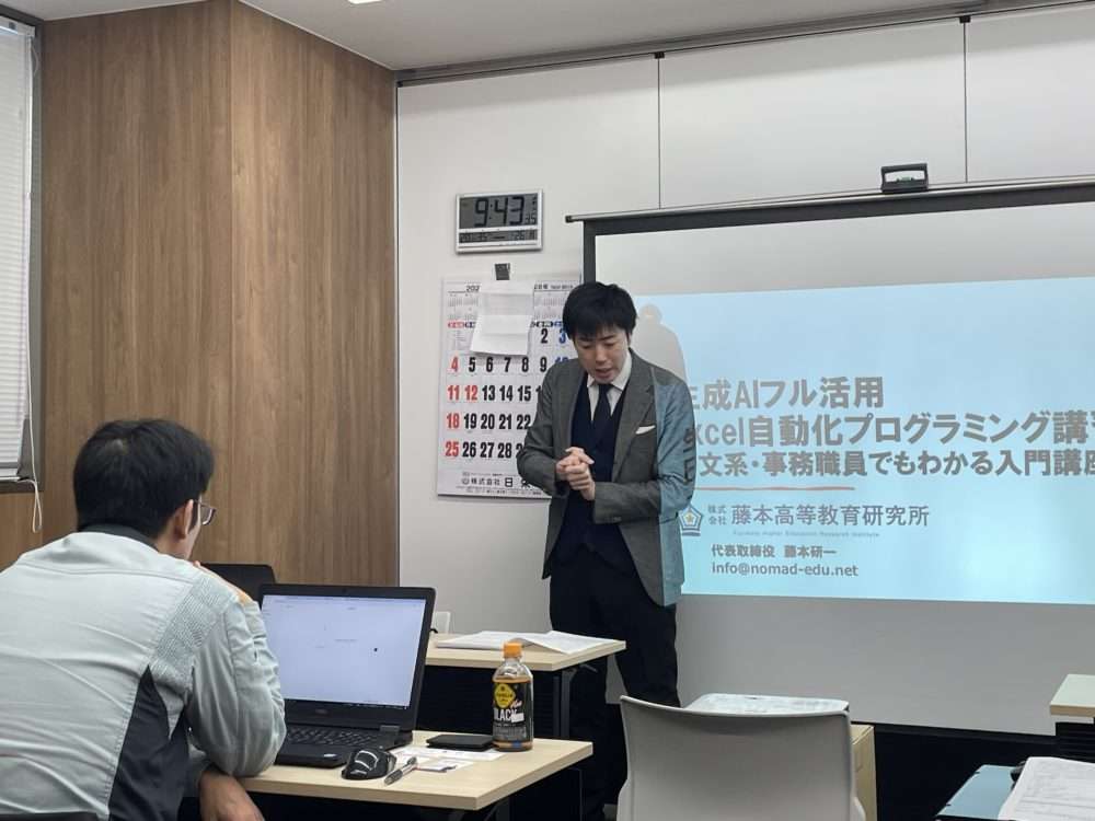1/26、札幌にて「生成AIフル活用Excel自動化プログラミング講習」を開催しました。大雪の中、遠方からもご参加いただき感謝申し上げます。ChatGPTを活用しExcelマクロプログラミングを作る方法と、AIに伝わる論理的な指示の出し方を学ぶ1日研修。業務効率化の可能性を実感していただける、満足度の高い研修となりました!