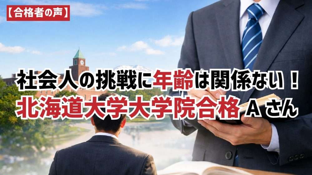 社会人の大学院進学に不安を感じる方は多いですが、合格者の体験談を読むことで不安を解消できます。北海道大学大学院を受験したAさんは、仕事経験を研究テーマに結びつけ、志望理由書や面接準備を着実に進め、今回見事合格を勝ち取られました!ご自身の経験をどう研究につなげるか。これが社会人大学院受験のポイントです!