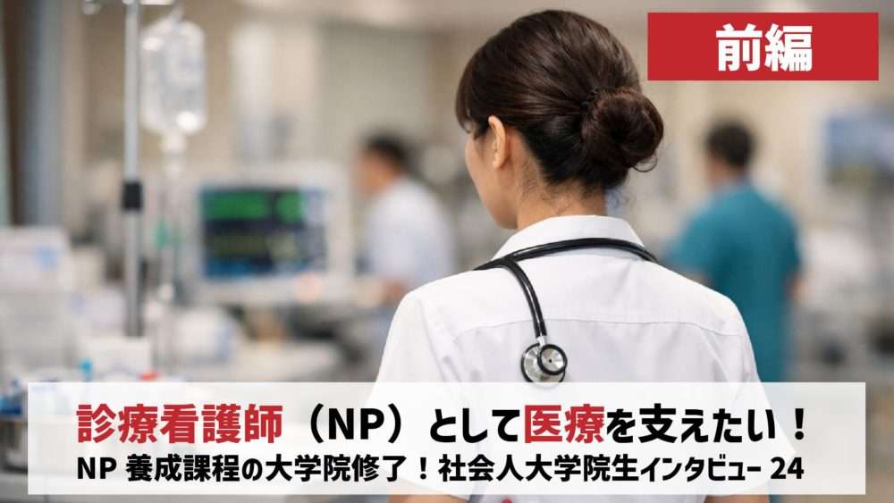 この春に看護大学院を修了され診療看護師(NP)資格を取られたAさんへのインタビュー前編。Aさんは小児分野のNPを目指し大学院へ進学。遠方の大学院ながらオンライン授業や実習時のマンスリーマンション利用などで引っ越さず修了されました。全科目80点以上必要という厳しい基準のなかでの学習。研究と実習の両立は大変でしたが、先輩の支えもあり成長につながった2年間となりました!