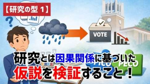 研究とは因果関係に基づいた仮説を検証すること!意外と知られていない研究の本質を解説します!【研究の型】1