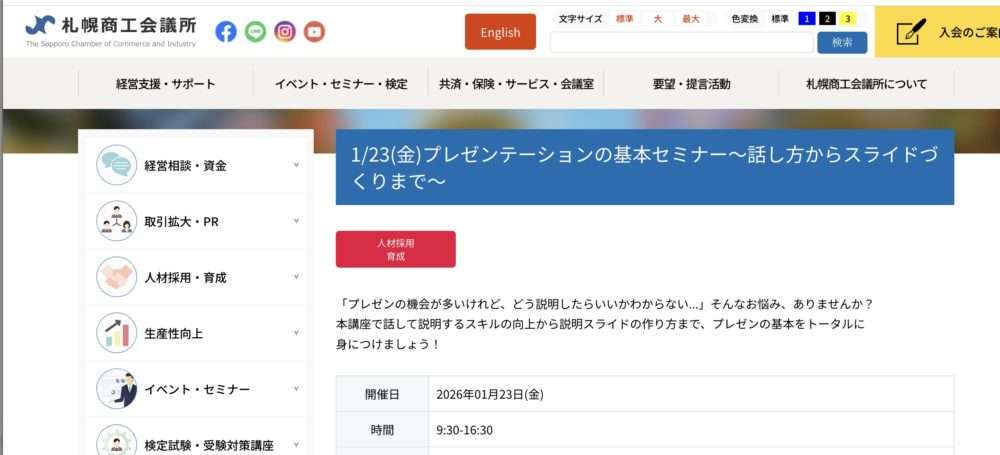 ▼札幌商工会議所主催ビジネスセミナー